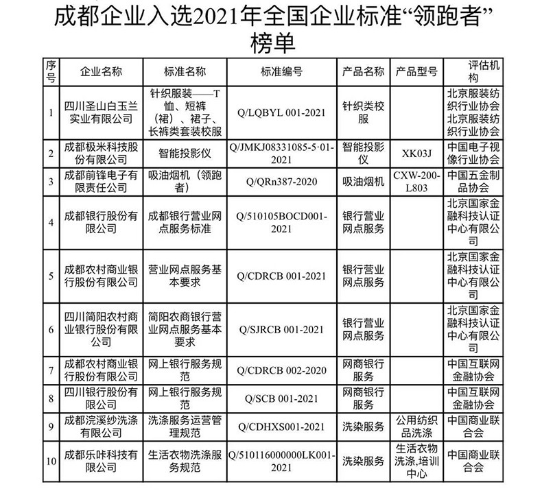 成都市入選全國(guó)“領(lǐng)跑者”榜單的企業(yè)標(biāo)準(zhǔn)將產(chǎn)生示范帶動(dòng)作用,推動(dòng)質(zhì)量提升,促進(jìn)消費(fèi)升級(jí),助推成都相關(guān)產(chǎn)業(yè)邁向價(jià)值鏈中高端,更好滿足人民日益增長(zhǎng)的美好生活需要。